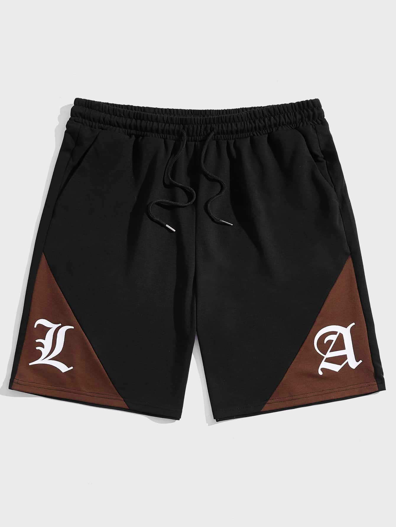 Männer Shorts mit Tunnelzug, Buchstaben Grafik, Farbblock,