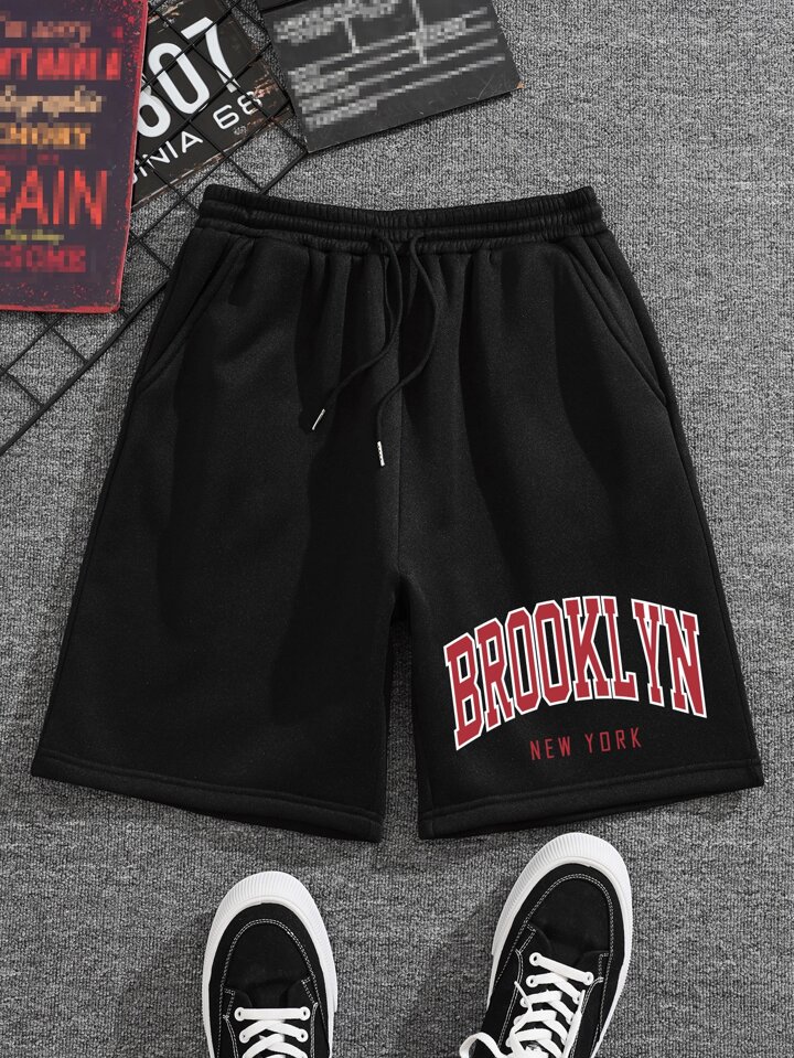 Männer Shorts mit Buchstaben Grafik, Tunnelzug,