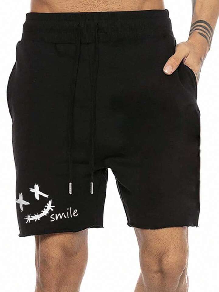 Männer Shorts mit Buchstaben Grafik, Tunnelzug,