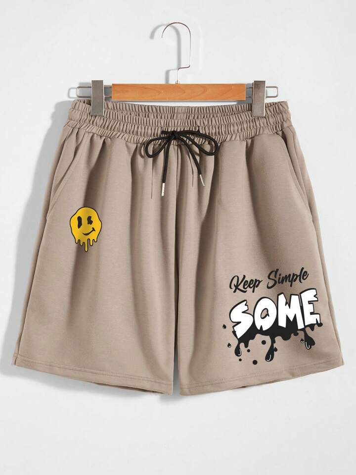 Männer Shorts mit Buchstaben Grafik, Tunnelzug,
