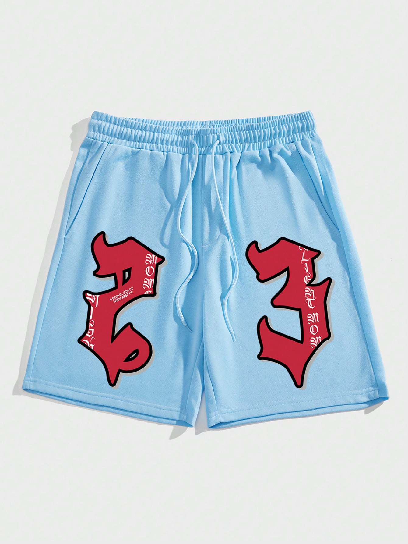 Männer Shorts mit Buchstaben Grafik, Tunnelzug,