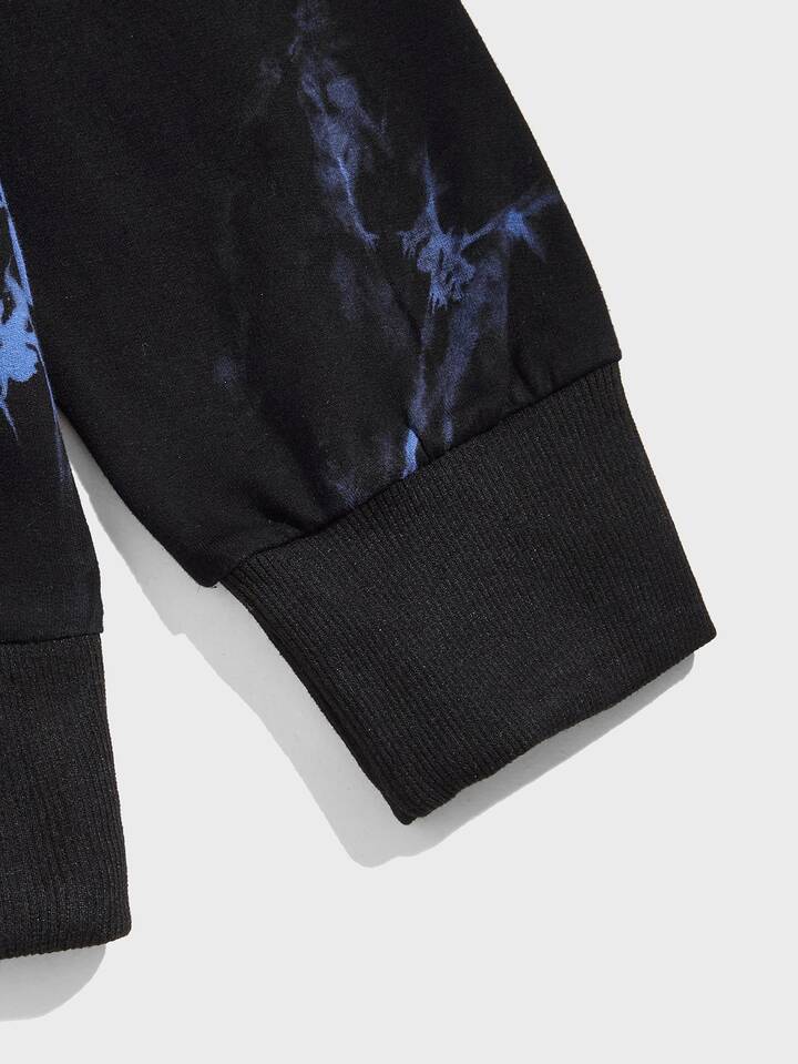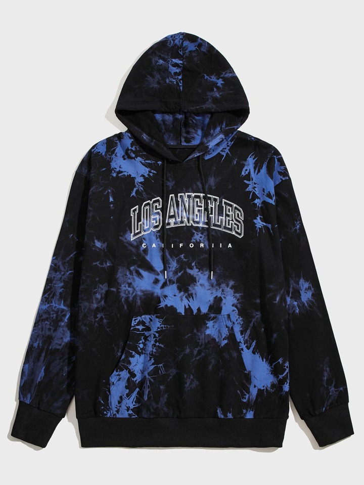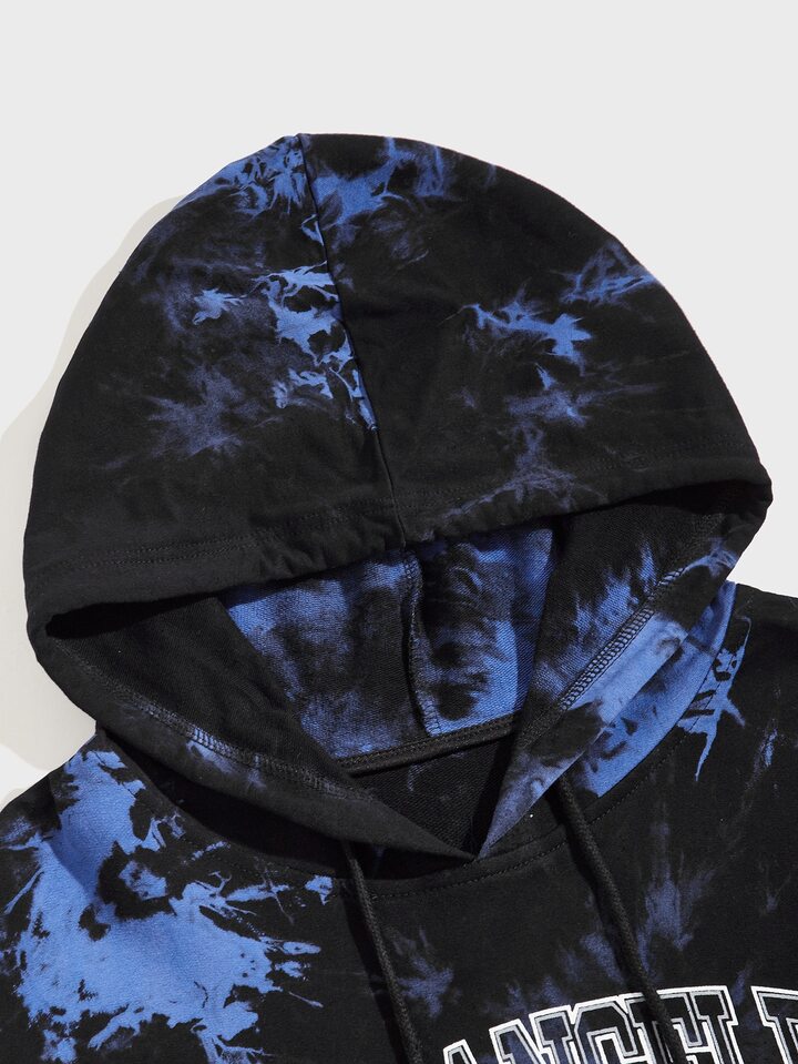 Männer Hoodie mit Buchstaben Grafik, Batik, Tunnelzug, Känguru-Tasche