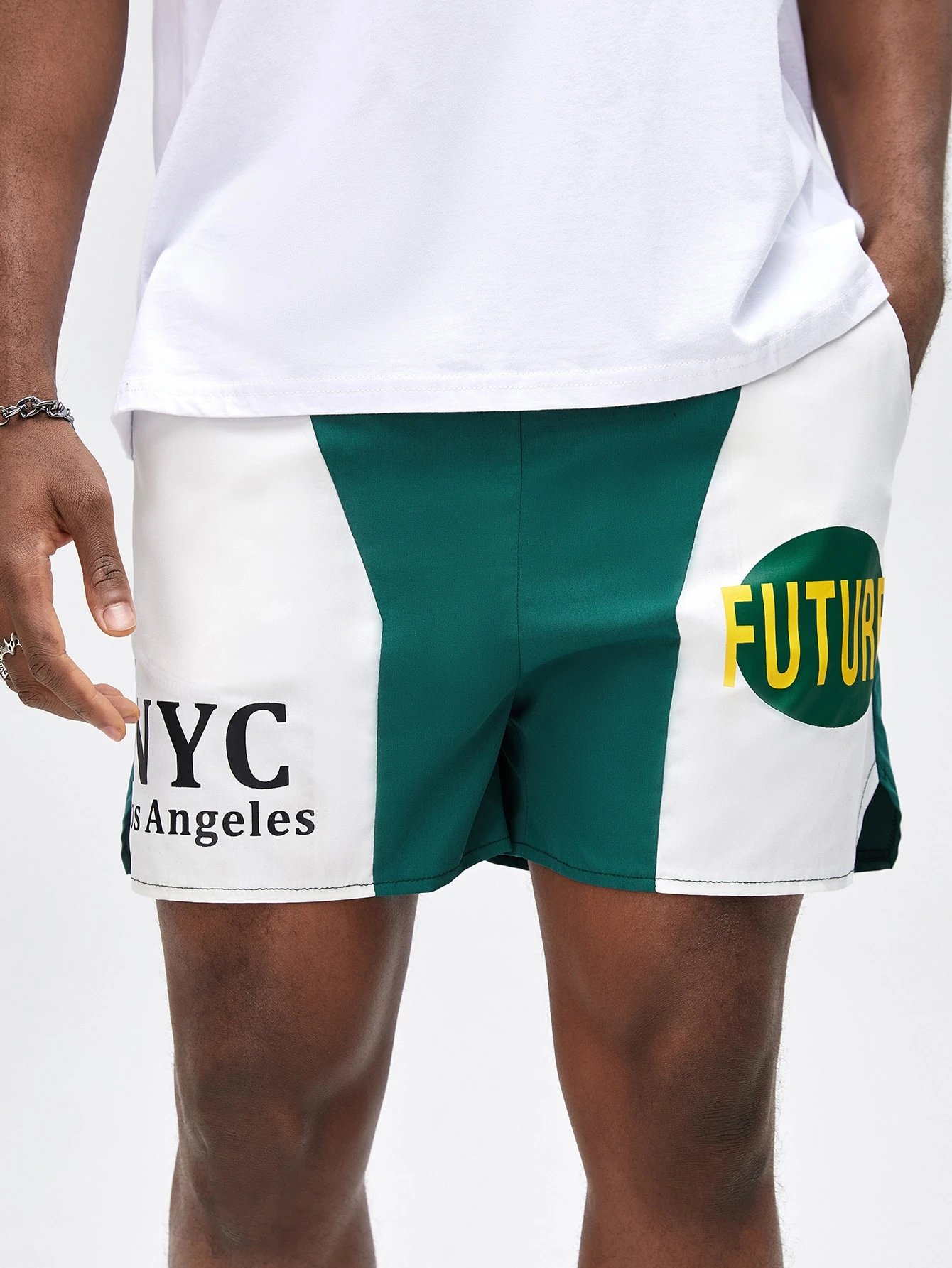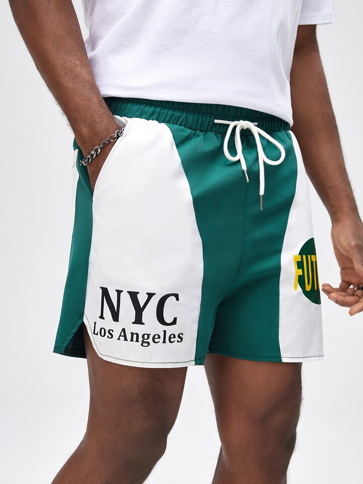 Männer Shorts mit Buchstaben Grafik, Tunnelzug