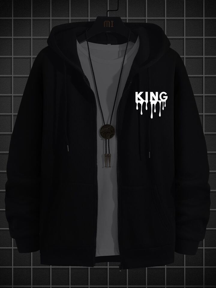 Männer Hoodie mit Buchstaben Grafik, Reißverschluss, Tunnelzug ohne T-Shirt