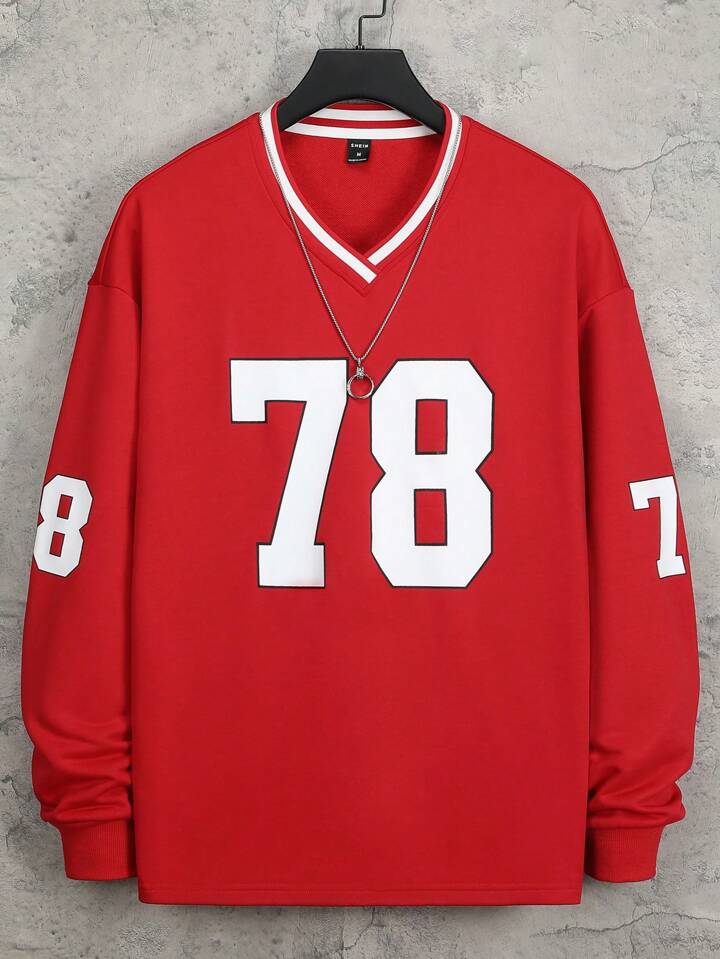 Männer Sweatshirt mit Nummer Muster, Streifen Drop Shoulder