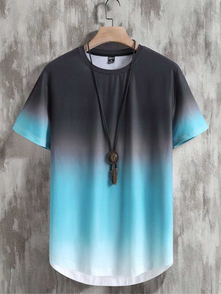 Männer T-Shirt mit Farbverlauf, gebogenem Saum
