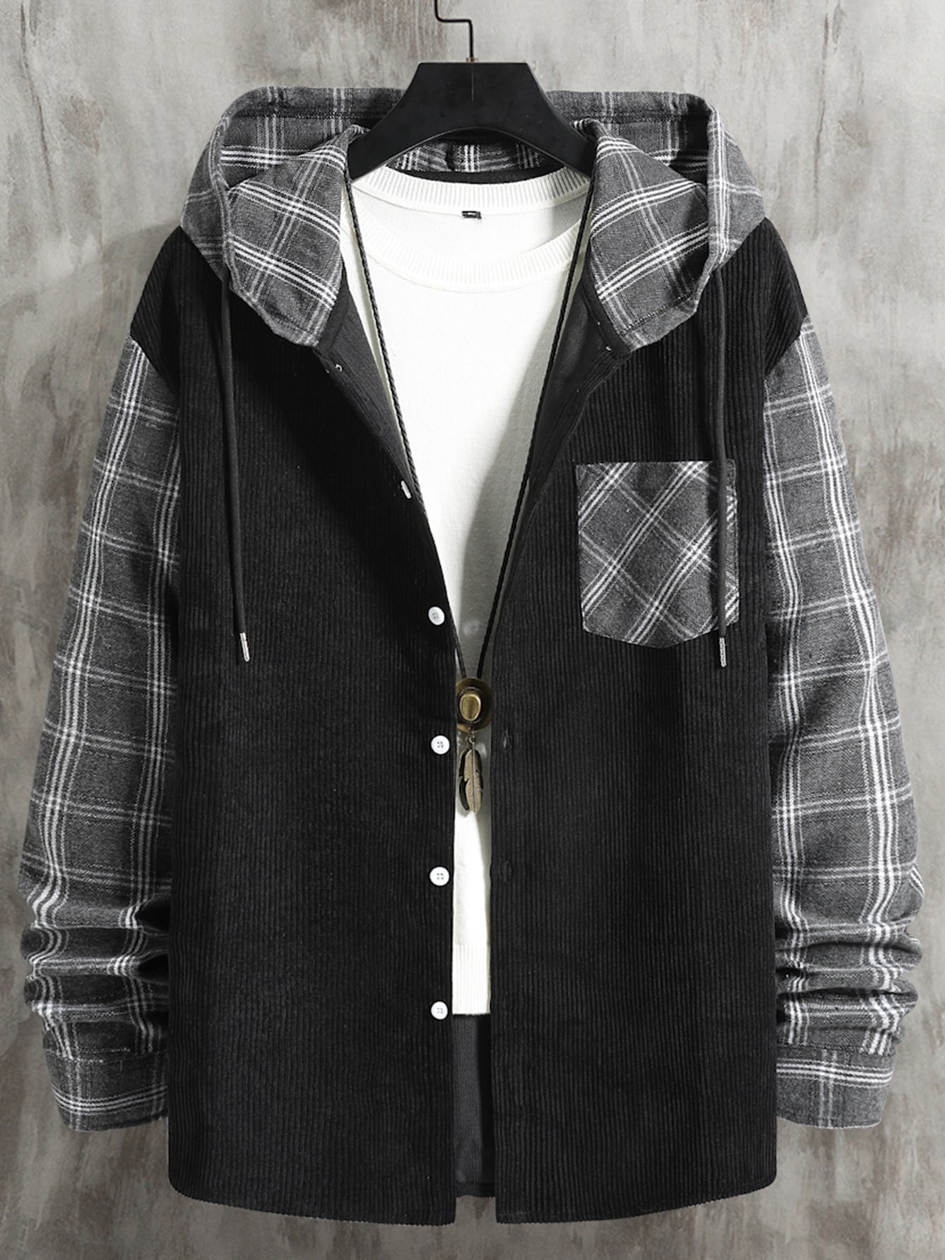 Männer Shirt mit Plaid Muster, Kapuze, ohne Pullover