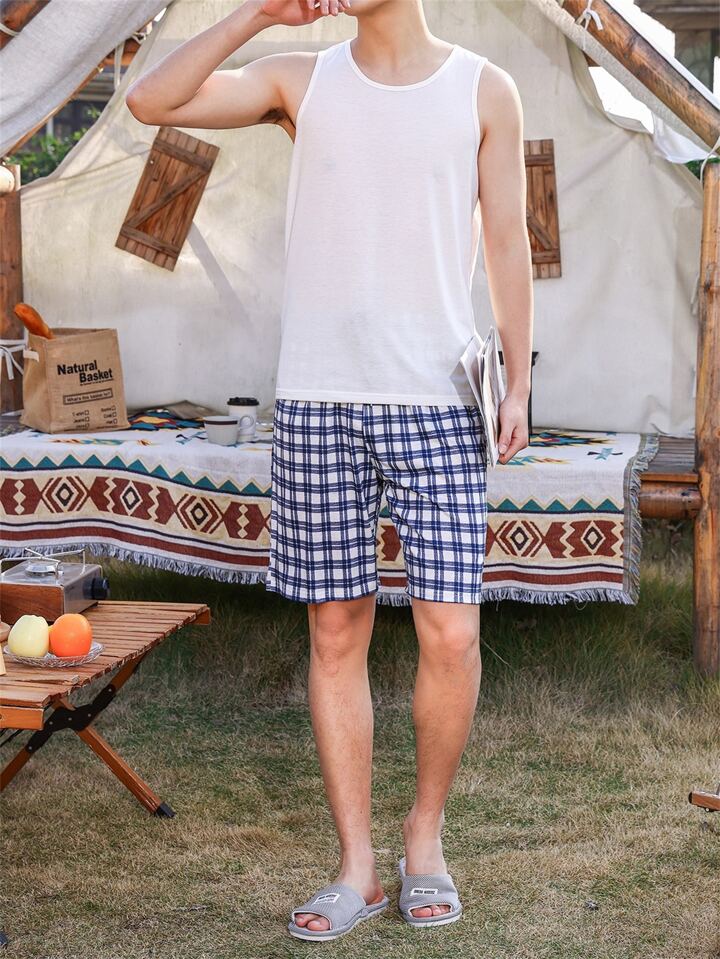 Männer Schlafshorts mit Plaid Muster, Tunnelzug