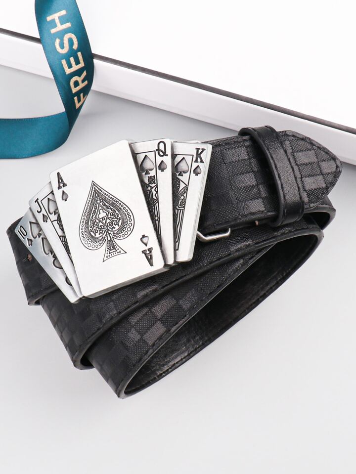 Männer Pu Polyurethan Poker Blumenmuster Schwarz Gürtel Geschenk Für Vater Und Freund Mit Punch Werkzeug Straße