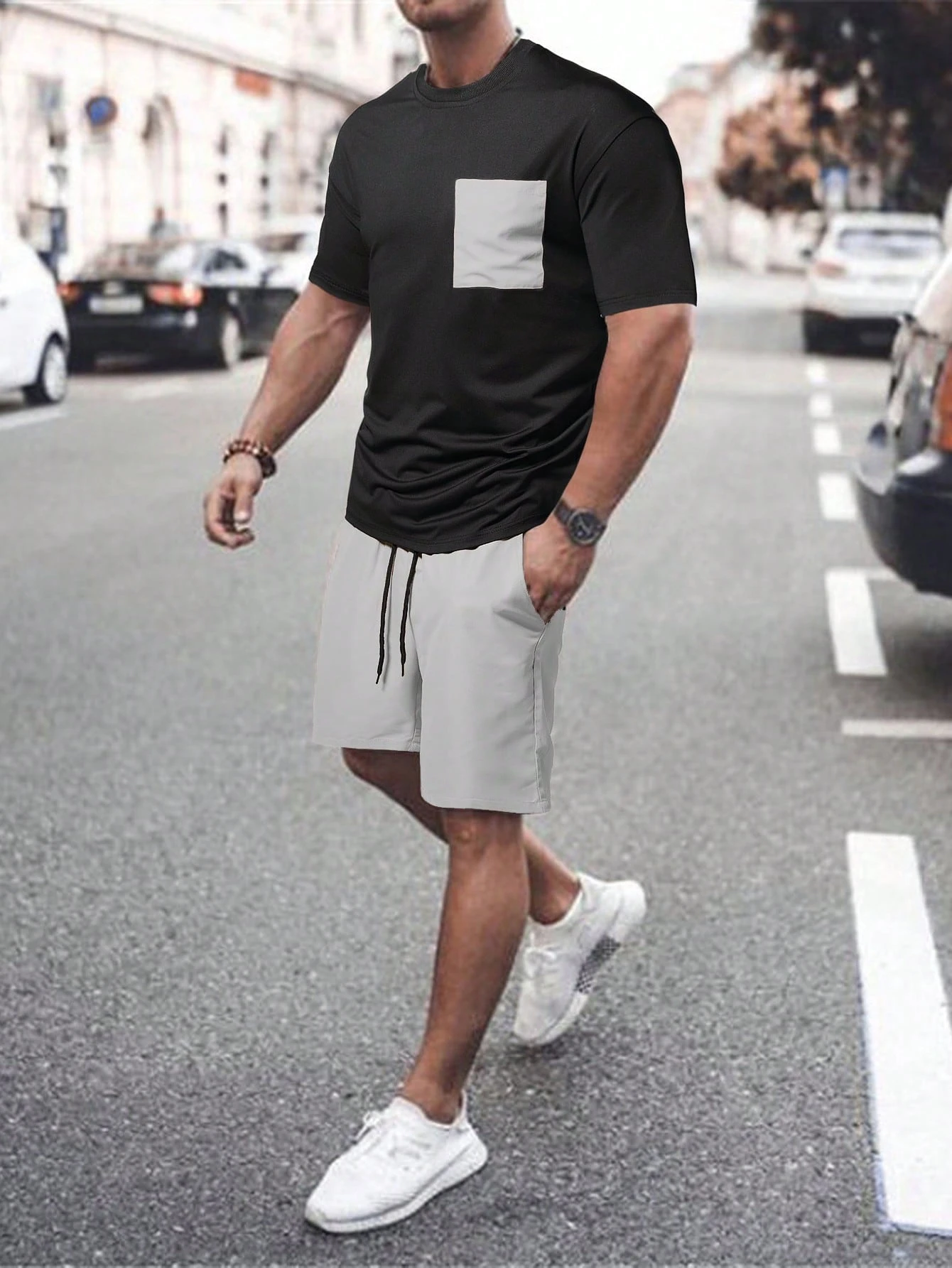 Männer Tasche Flicken, T-Shirt mit & Tunnelzug, Shorts mit