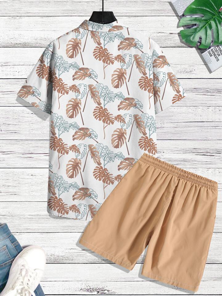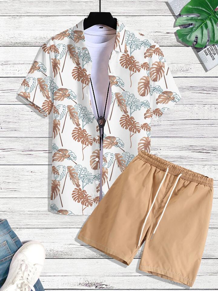 Männer Shirt mit zufällig Tropenmuster, & Shorts mit Tunnelzug ohne T-Shirt
