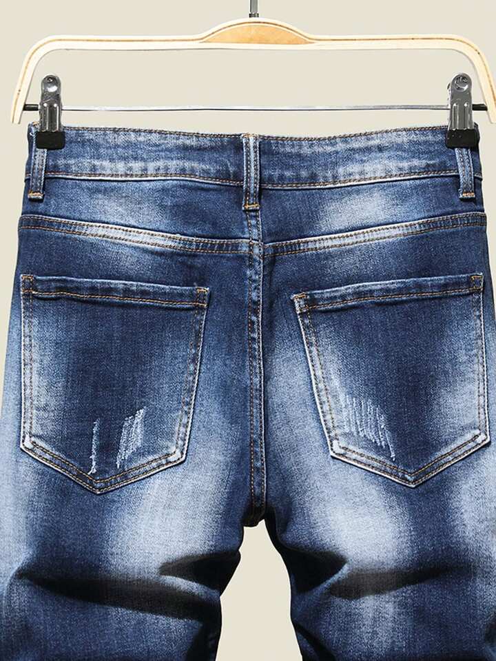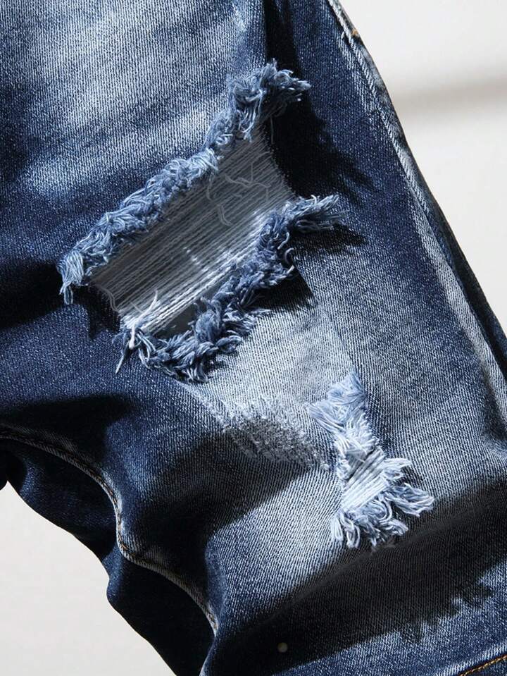 Herren Baumwolle zerrissene Frayed Bleach Wash Denim Shorts Jorts, Einfach, Marine blau, Vintage für den Urlaub