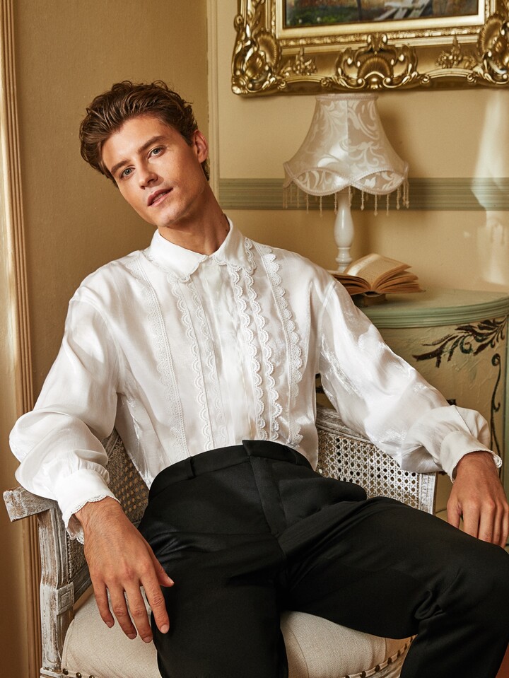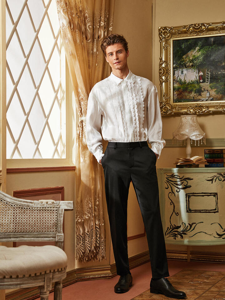 Hemd mit Bogenkante und Guipure Spitze Detail