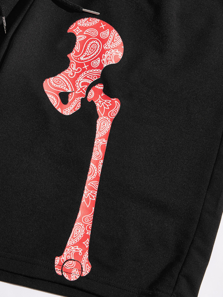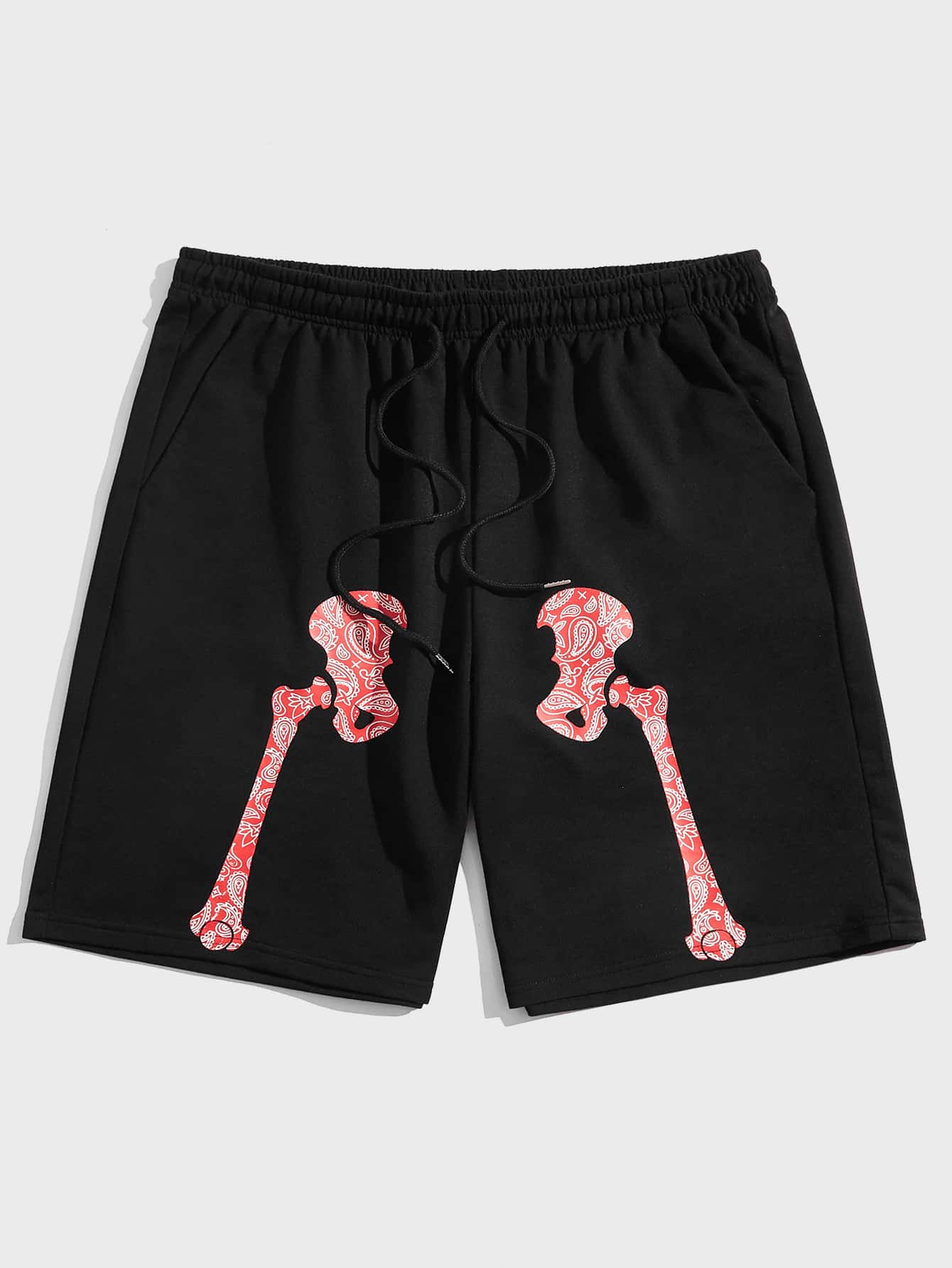 Männer Shorts mit Tunnelzug, Skelett & Paisley Grafik