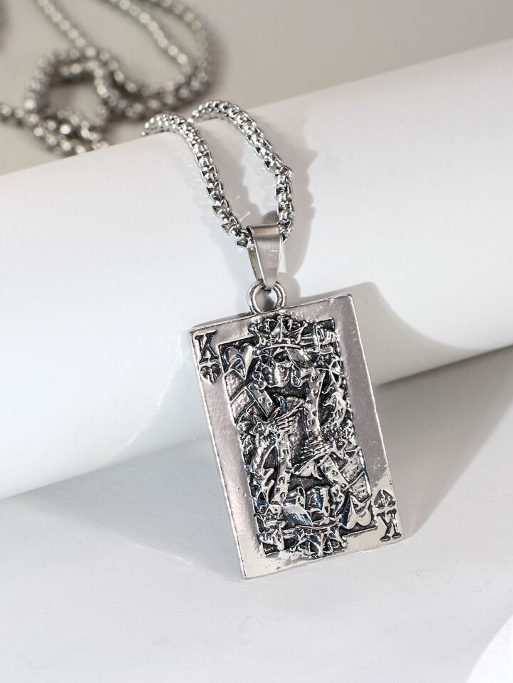 1 Stück Retro Skelett Spielkarten Anhänger Halskette für Herren