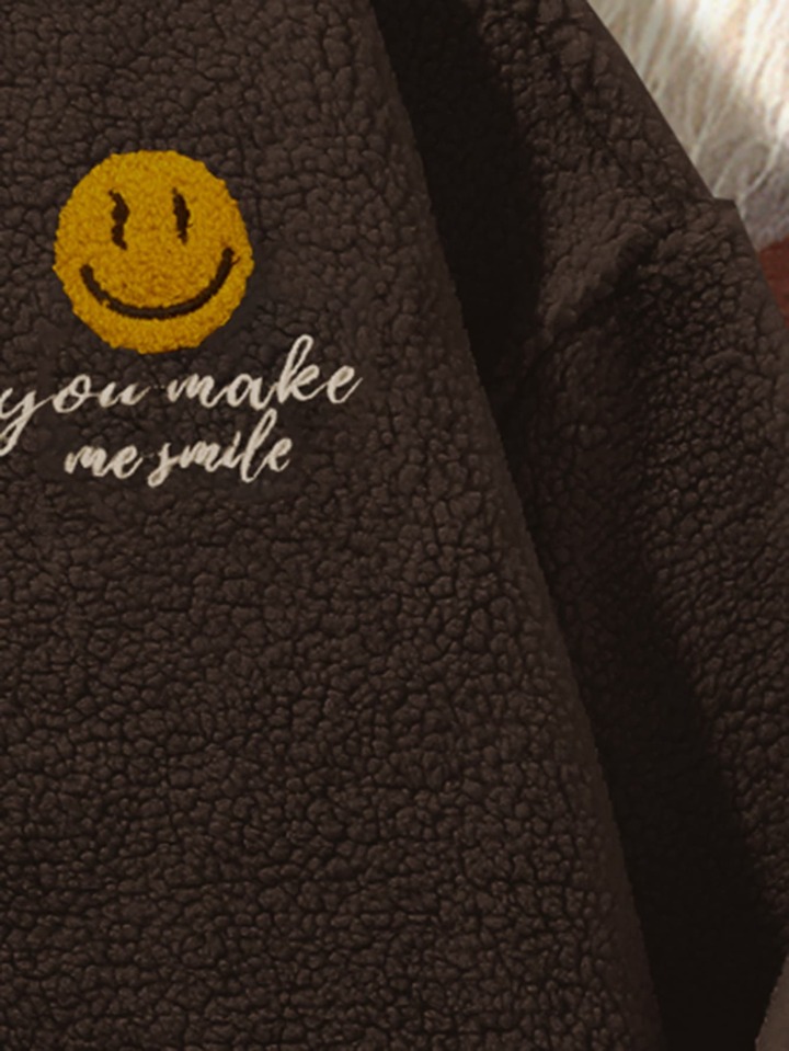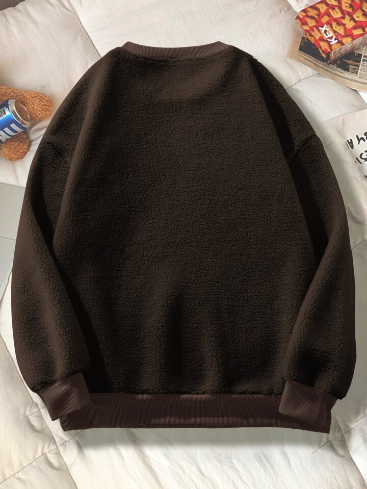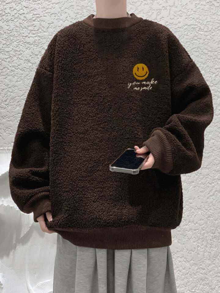 Männer Sweatshirt mit Buchstaben & Cartoon Gesicht Stickerei, Drop Shoulder Teddy