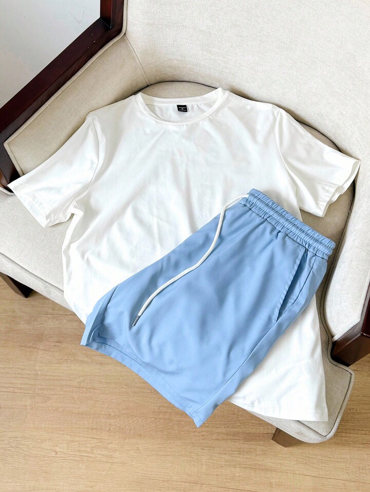 Herren Outfit mit Slogan & Cartoon Grafik T-Shirt und Shorts mit Kordelzug Taille für den Sommer, Partnerlook
