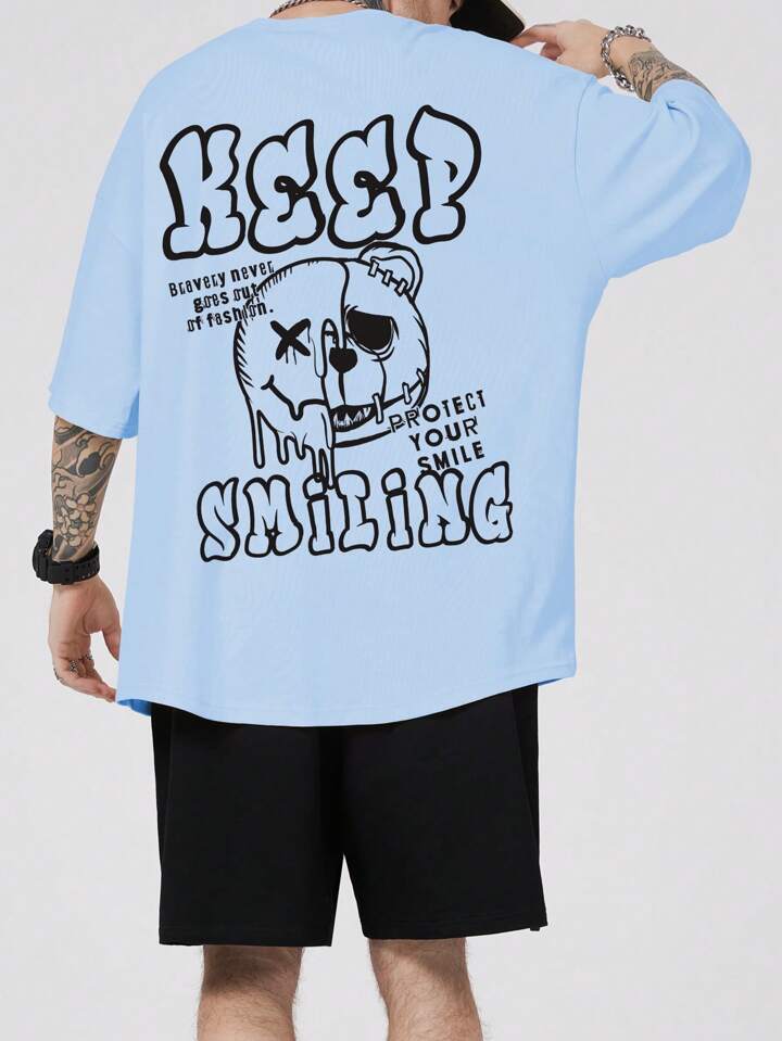 Männer T-Shirt mit Buchstaben Cartoon Grafik