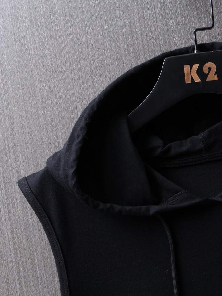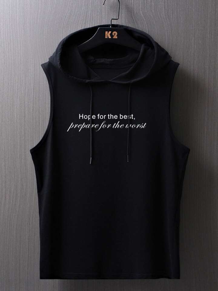 Männer Tank Top mit Buchstaben Grafik, Tunnelzug, Kapuze
