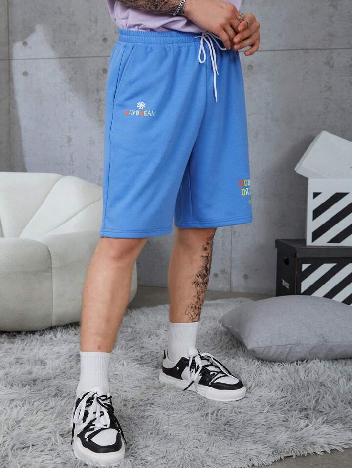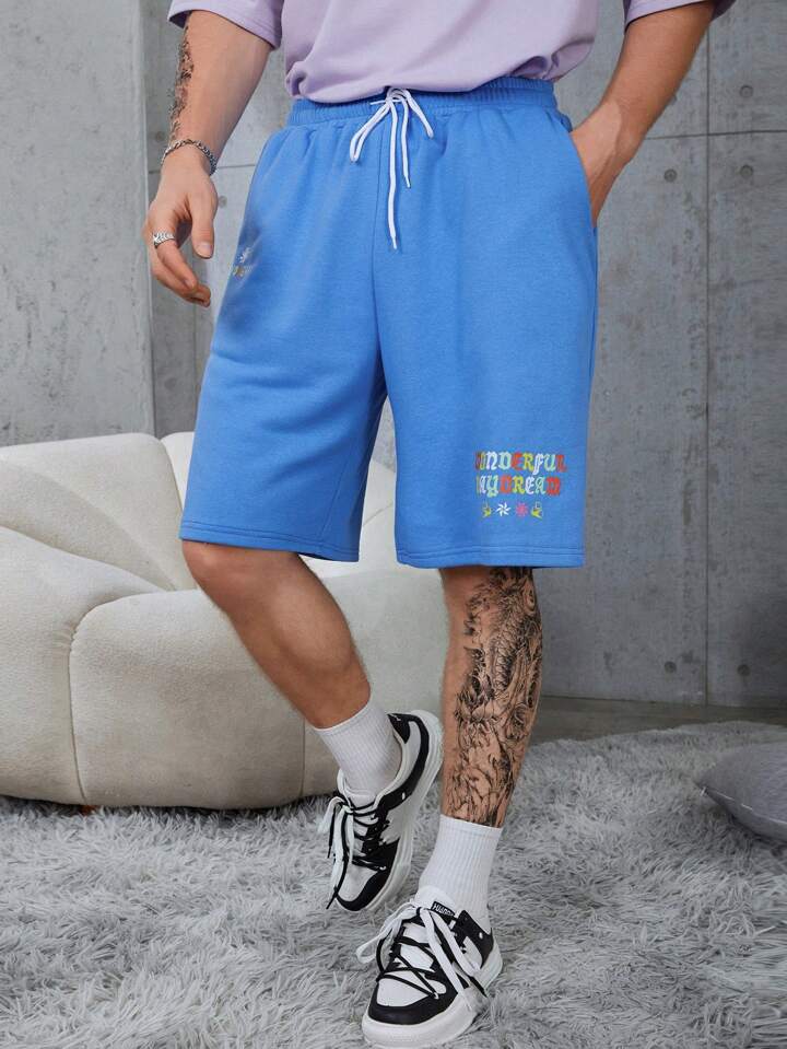 Lose Herrenhose Mit Slogan Grafik Und Kordelzug