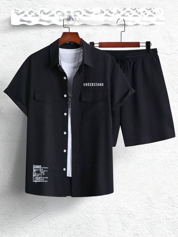 Männer Buchstaben Grafik, Shirt & Tunnelzug, Shorts ohne T-Shirt