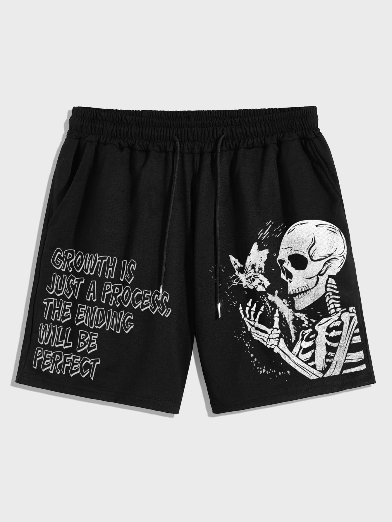 Männer Shorts mit Buchstaben & Schädel Muster, Tunnelzug