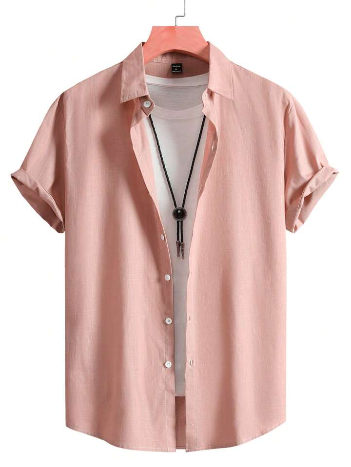 Herren Baumwolle Hemd aus einfarbiger mit Knöpfen ohne T-Shirt