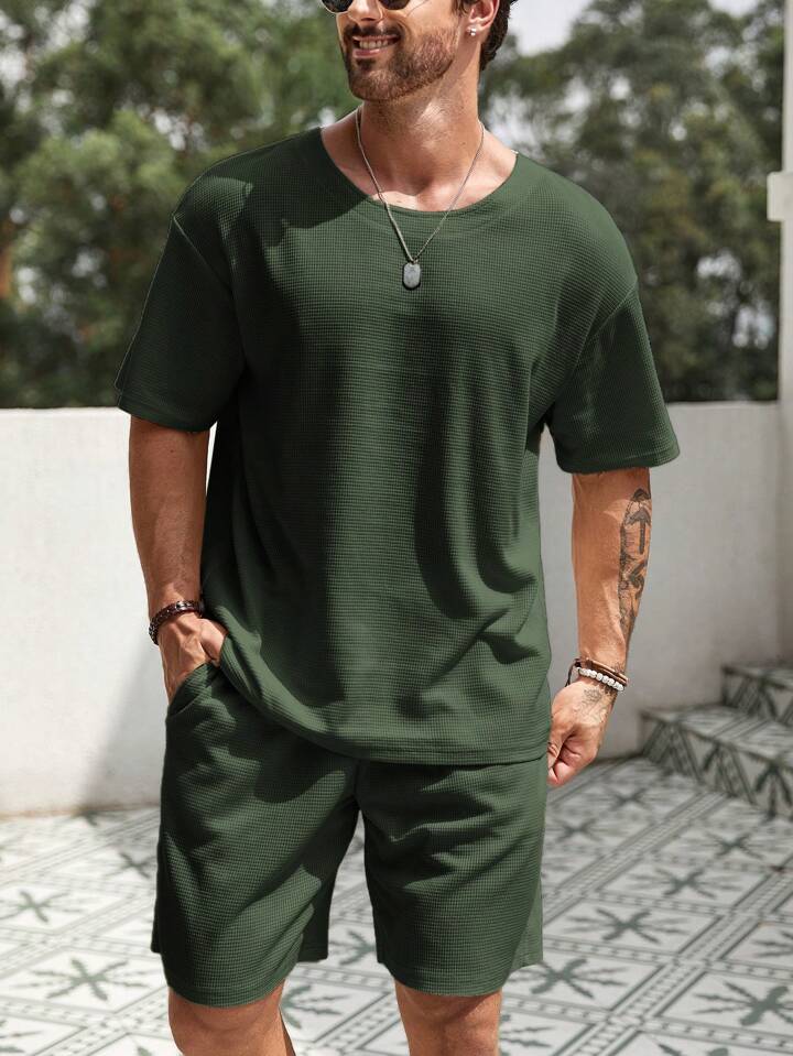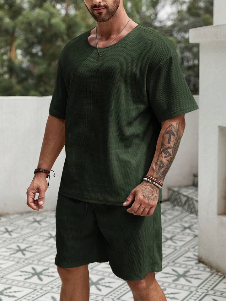 Männer Einfarbig Drop Shoulder T-Shirt mit & Tunnelzug, Shorts mit