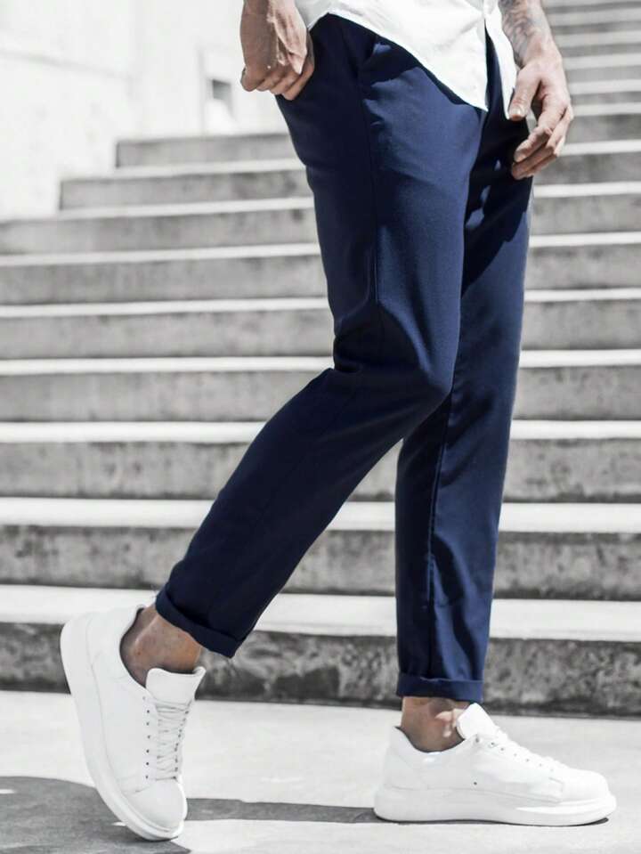 Herren einfarbige verjüngte Hose, Ausgehenhose aus reiner Baumwolle für Lässig-Looks, als Geschenk für Ehemann oder Freund, für den Herbst