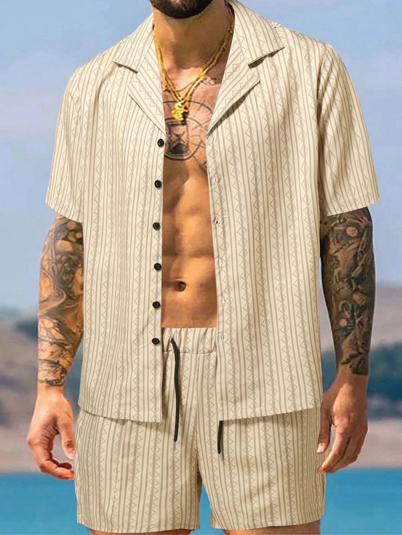 Männer Streifen & Geo Muster, Shirt mit & Tunnelzug, Shorts Set mit