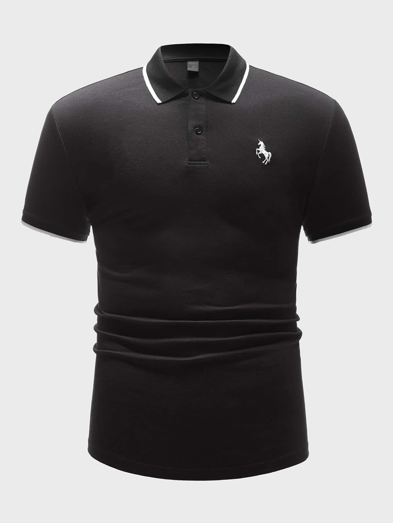 Männer Polo Shirt mit Streifen Pferd Stickerei