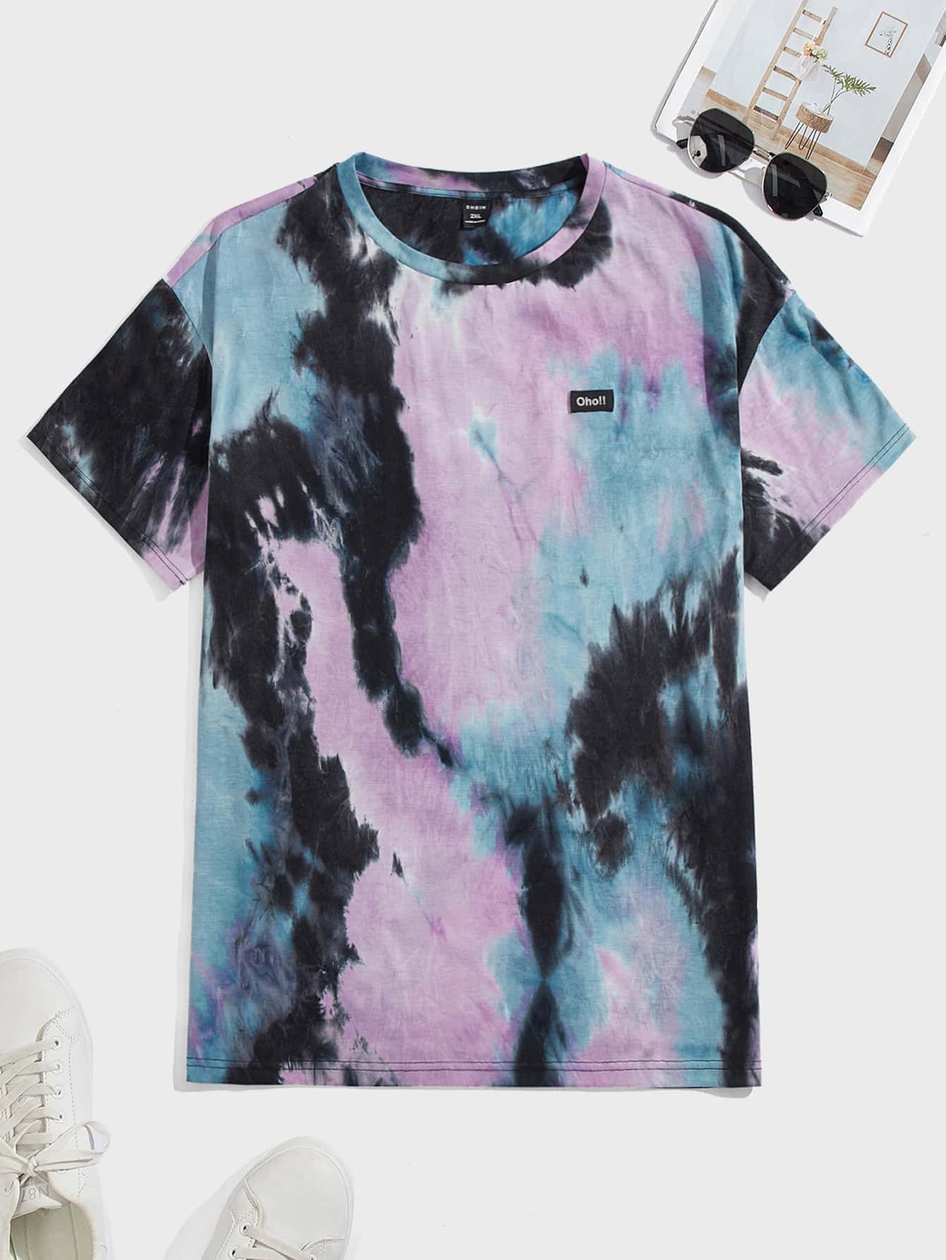 Männer T-Shirt mit Batik, Buchstabe Flicken Detail