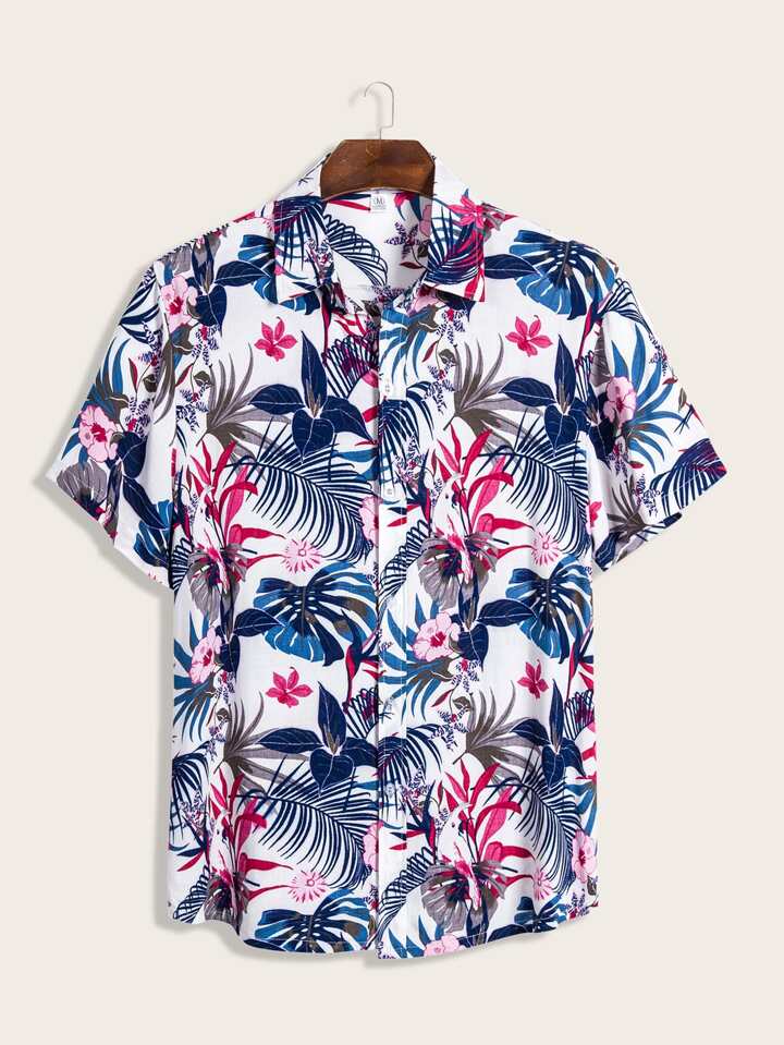 Vielfarbig Knöpfen vorn Geblümt Boho Männer Hemden