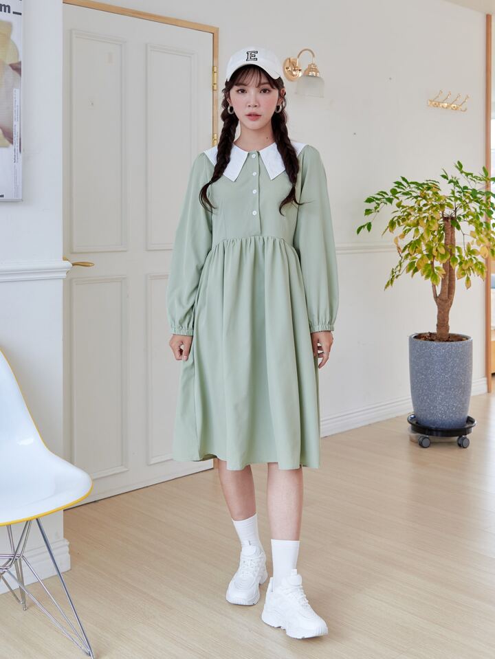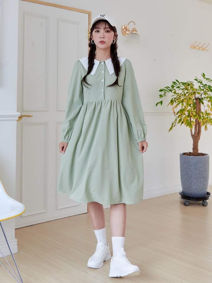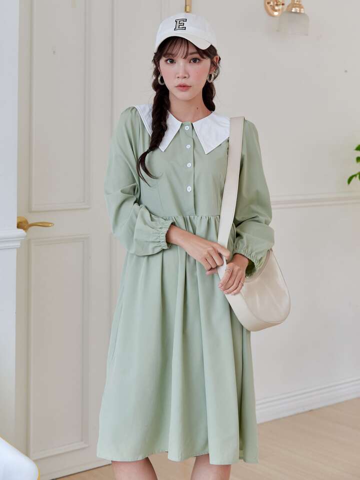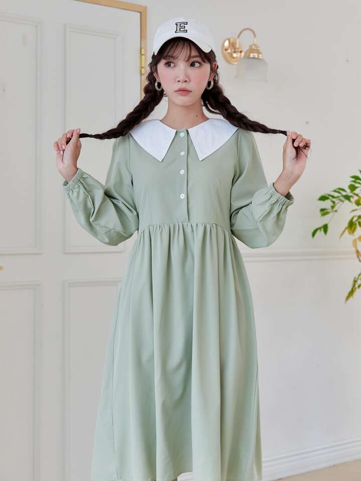 Kragen-Kleid mit Kontrast-Knopfleiste und Peter-Pan-Kragen
