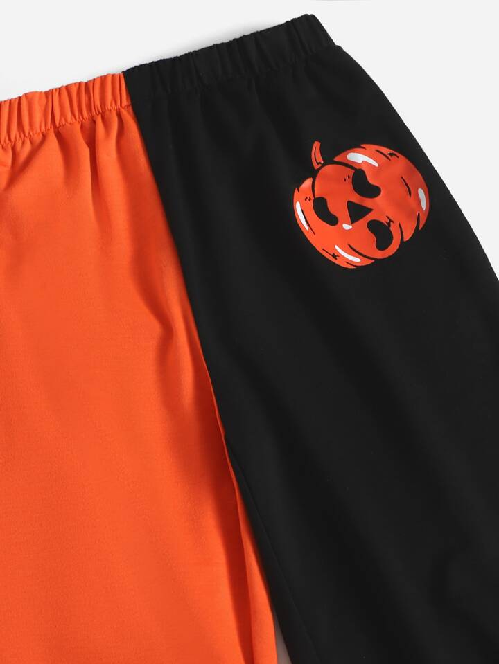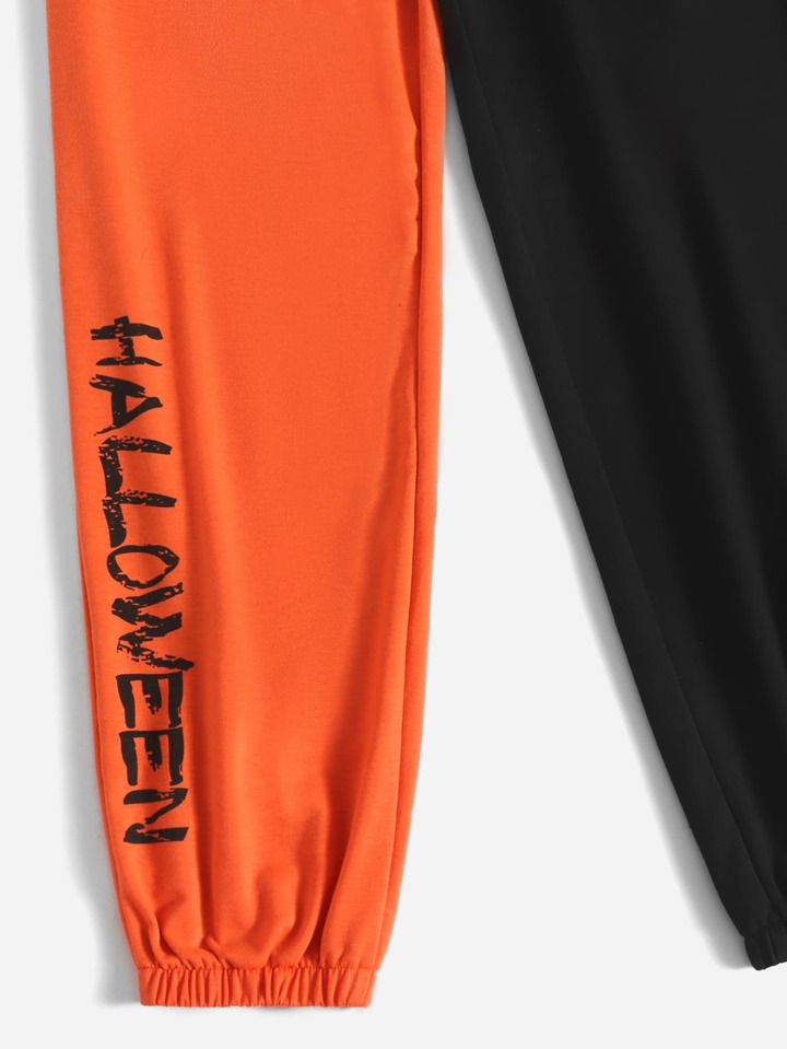 Jogginghose mit Halloween Buchstaben Grafik, Farbblock