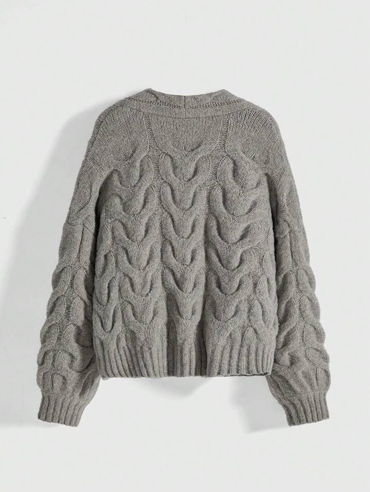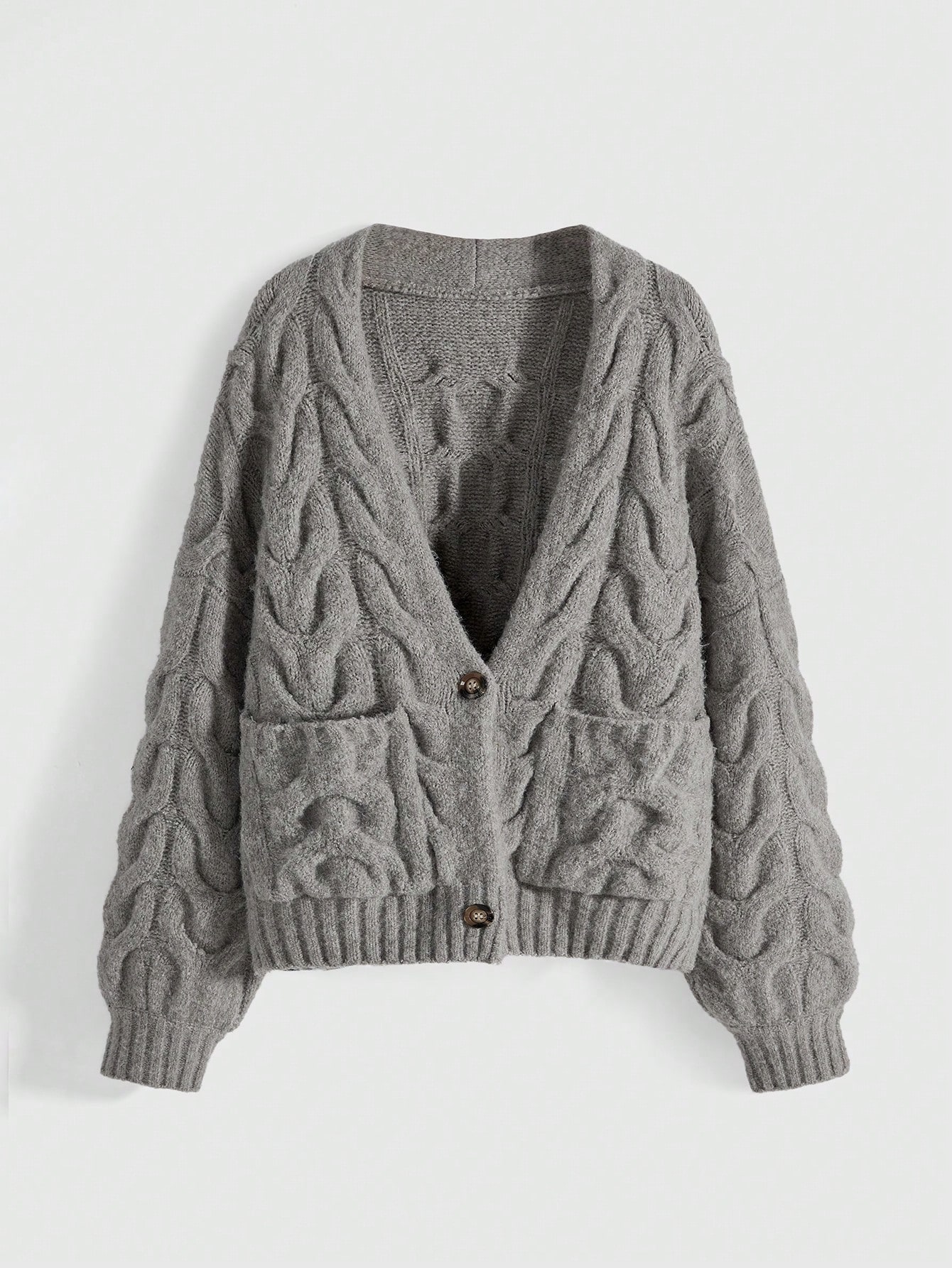 Handgefertigter Retro-Strickjacke mit tiefer V-Ausschnitt und loser Strickstruktur