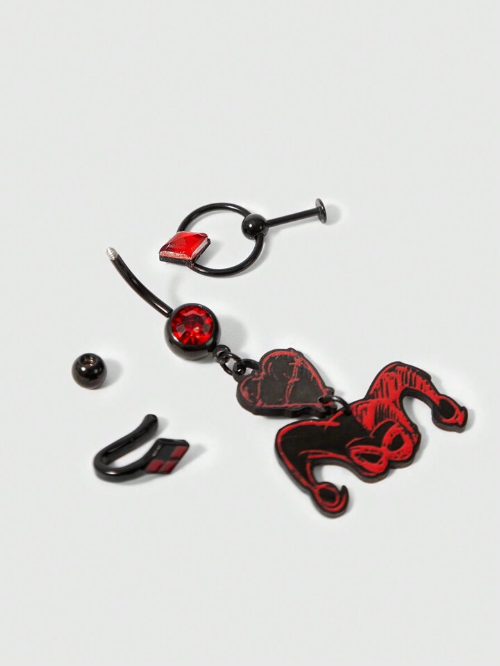 Harley Quinn | ROMWE 3 Stücke Set aus Nasenpiercing, Lippenpiercing und Bauchnabelpiercing mit Joker Design
