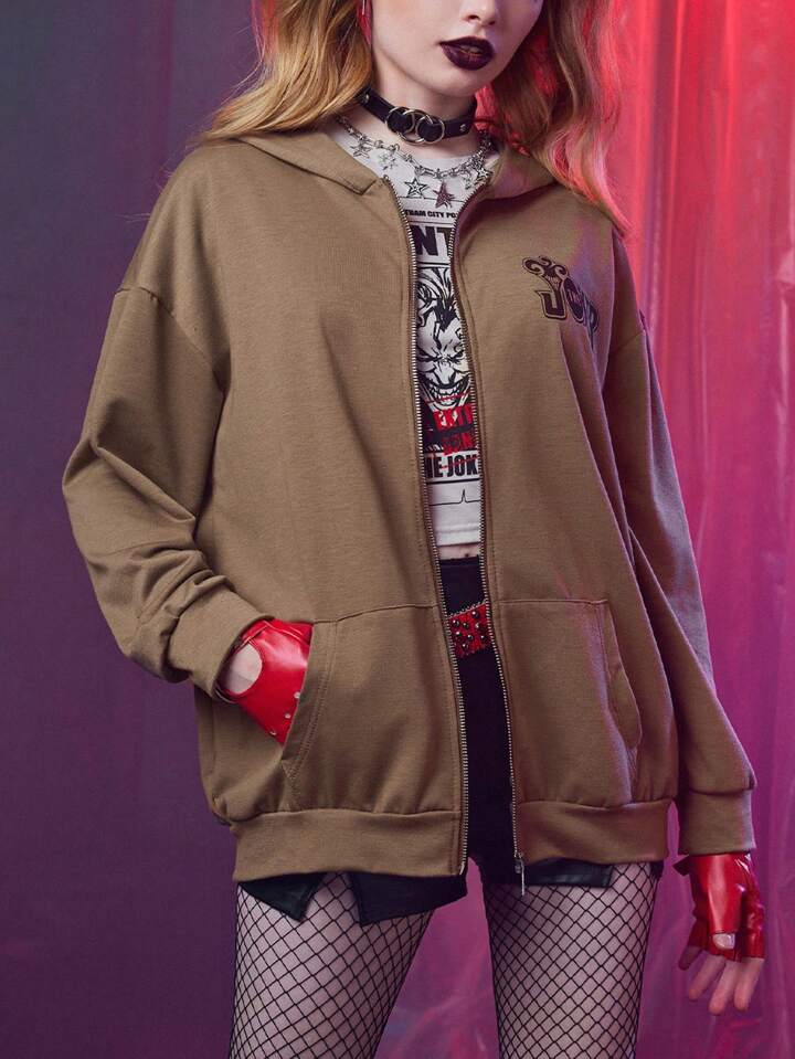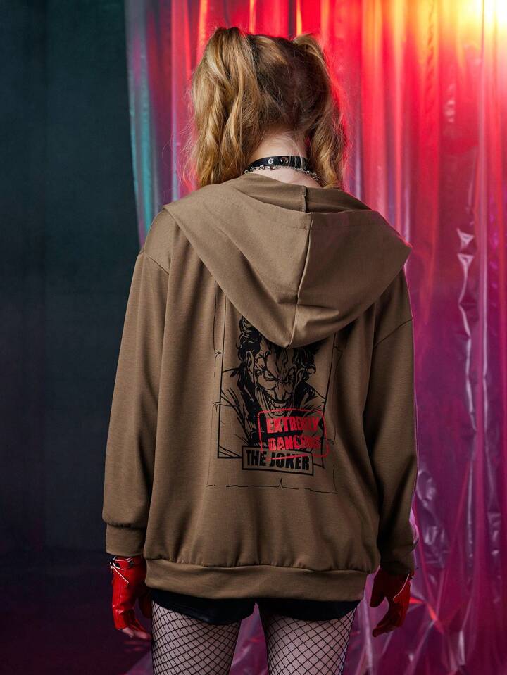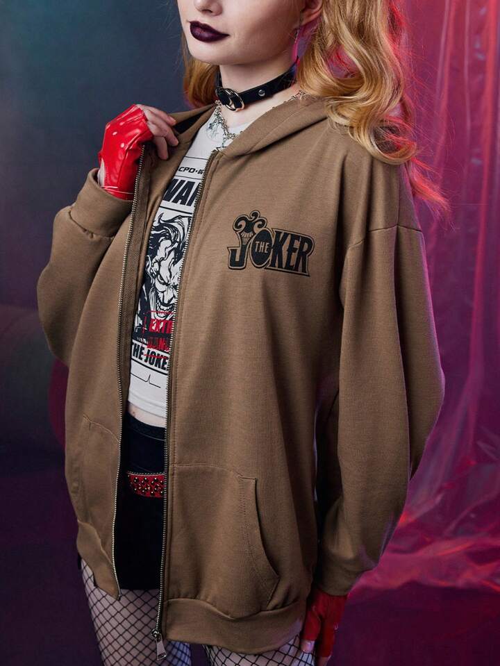 Harley Quinn | ROMWE Kapuzenpullover mit Reißverschluss Buchstaben Grafik