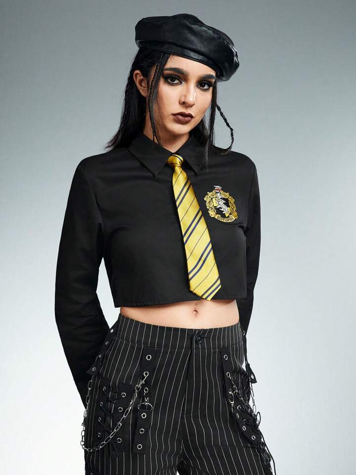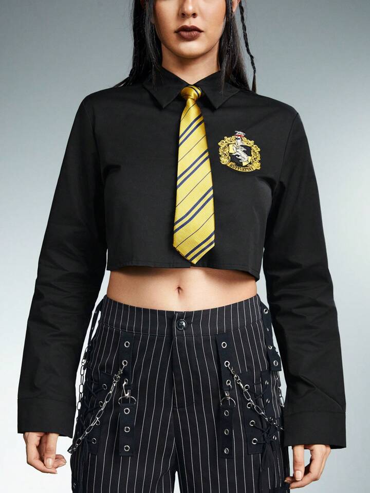 Harry Potter | ROMWE Akademie Langarm Crop Hemd mit gestreifter Krawatte