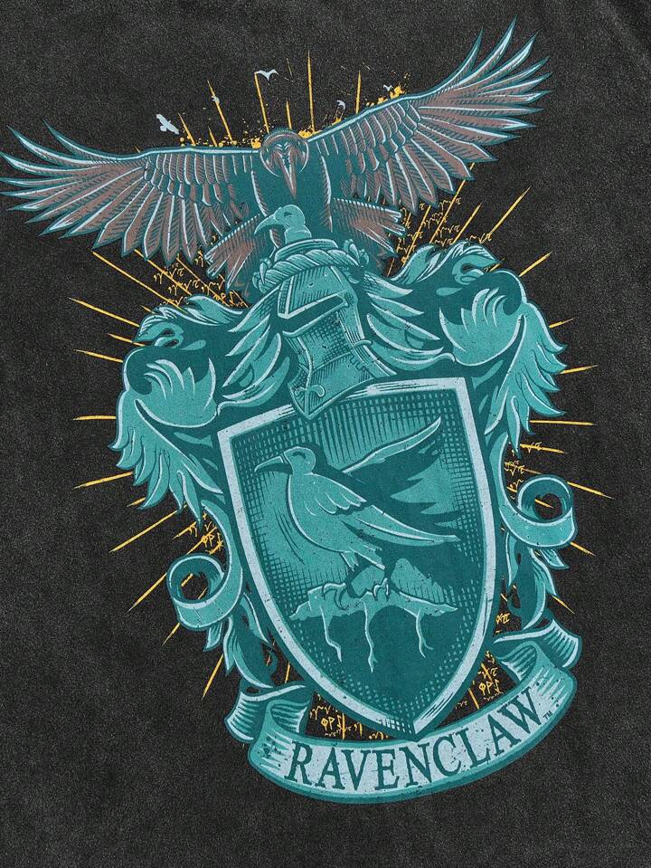 Harry Potter | ROMWE Ravenclaw Haus locker geschnittenes Langarm Damen T-Shirt mit abgenutzt aussehendem blauem gedrucktem Abzeichen