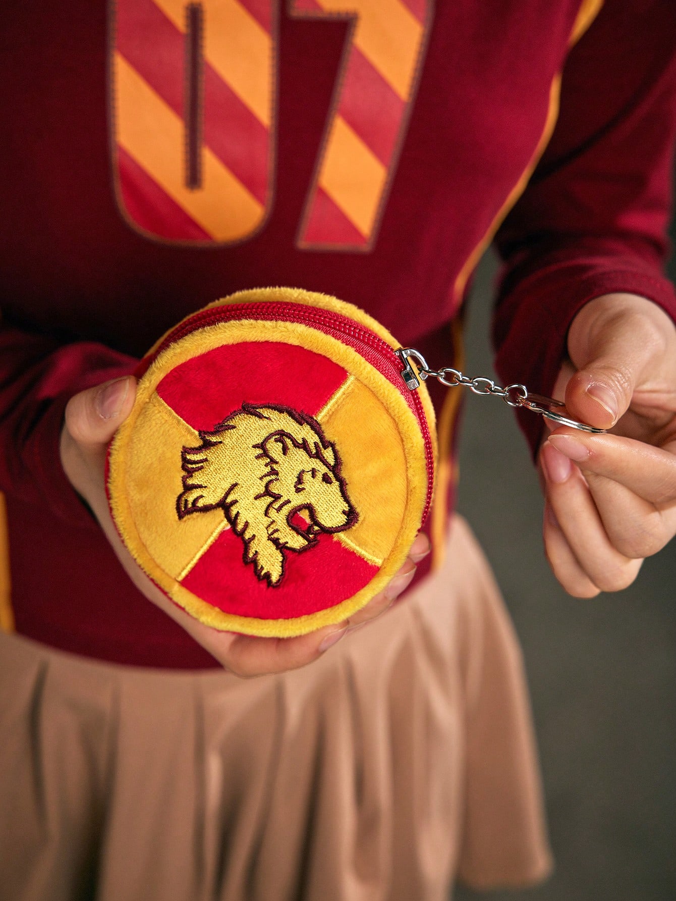 Harry Potter | ROMWE Runde Münzgeldbörse In Rotem Und Gelbem Farbblock Mit Löwenmuster