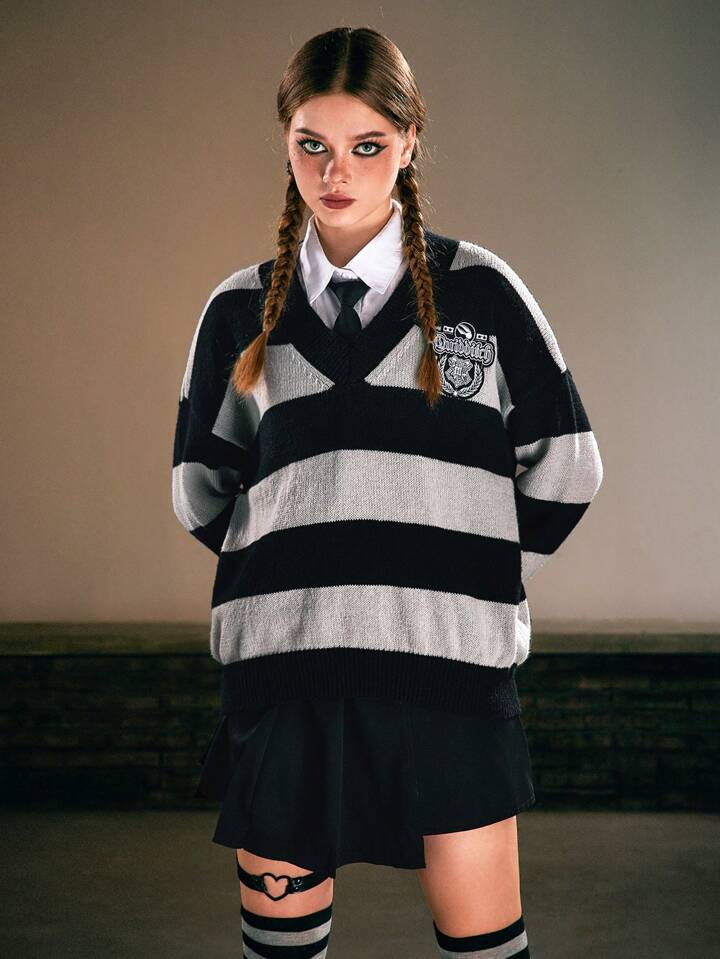 Harry Potter | ROMWE Gestreifter Damen Lockerer College-stil Strickpullover