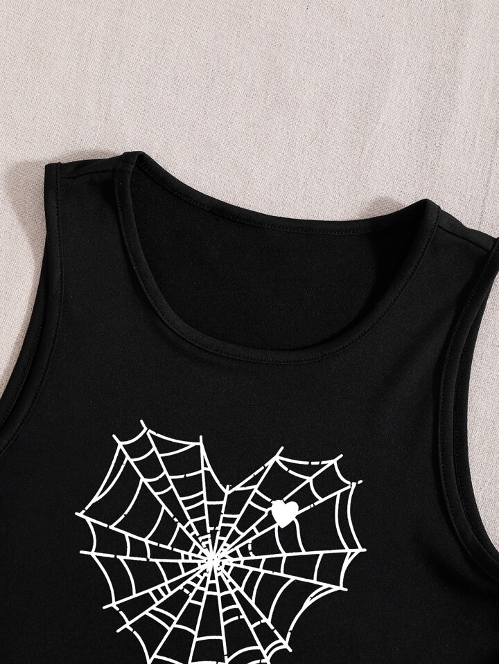 Herz und Spinnennetz Muster Crop Top grafische T-Shirts Damen Oberteile