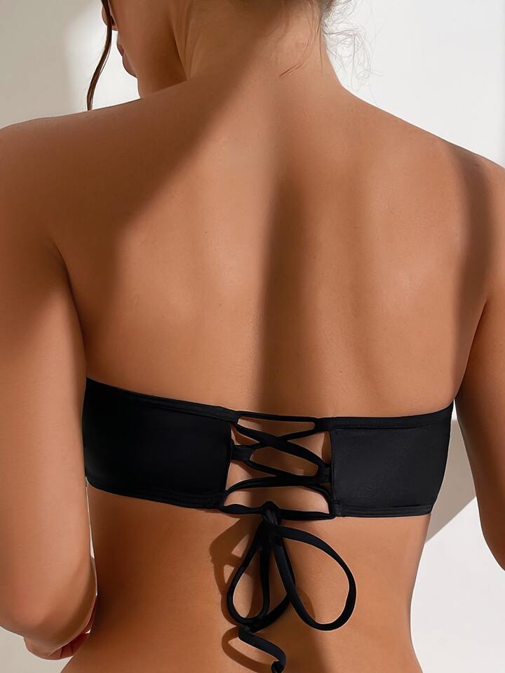 Bandeau Bikini Top mit Herz Muster, Mesh, Rüschen