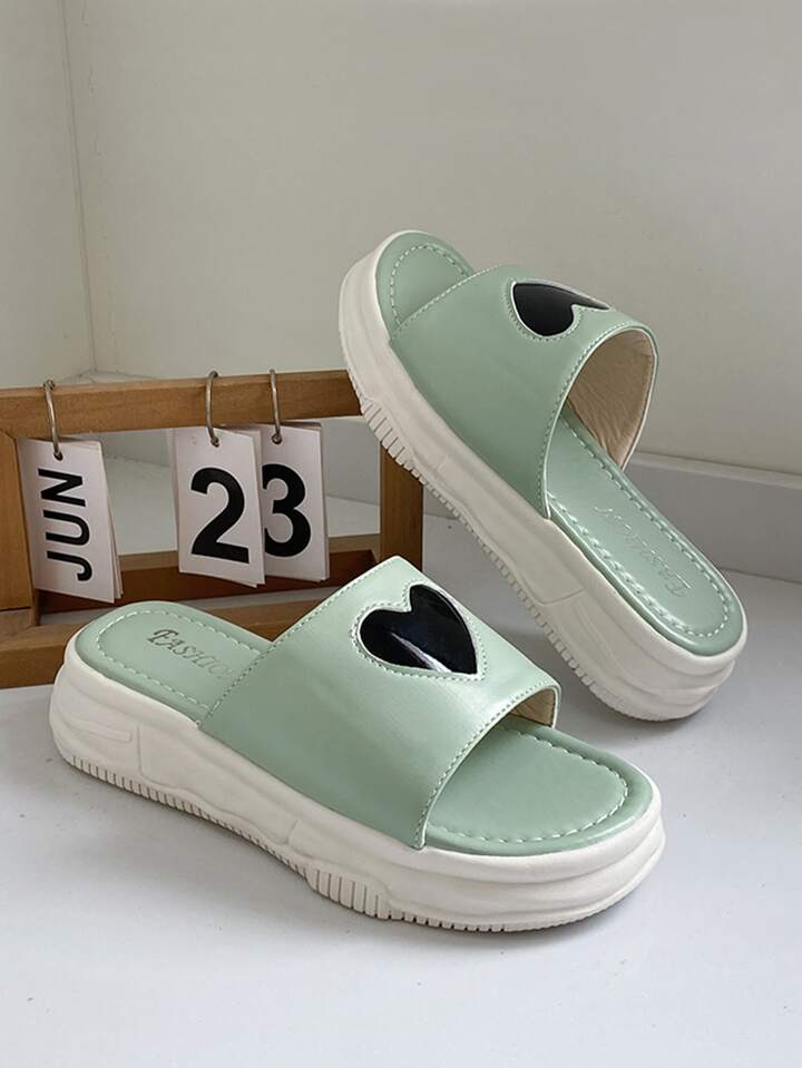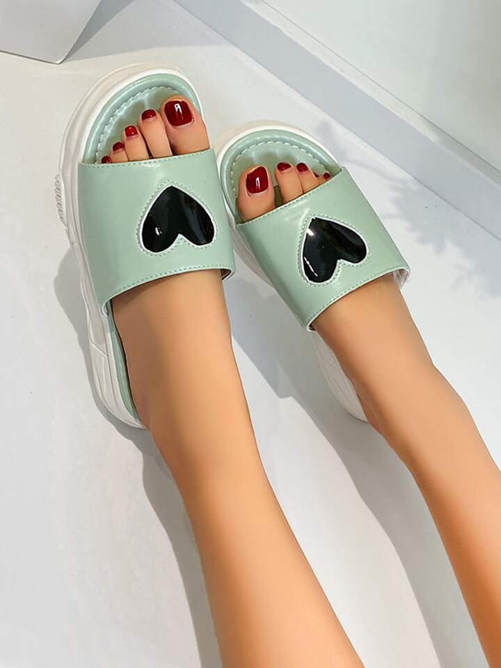 Pantolette mit Herzen Muster, Flatform