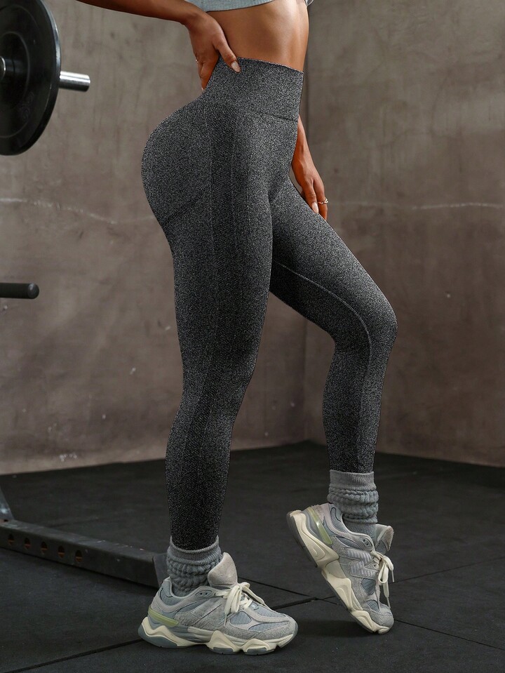 Graumelierte Yoga Leggings, melierte, nahtlose, hüftumschmeichelnde Trainingsleggings zur Bauchkontrolle