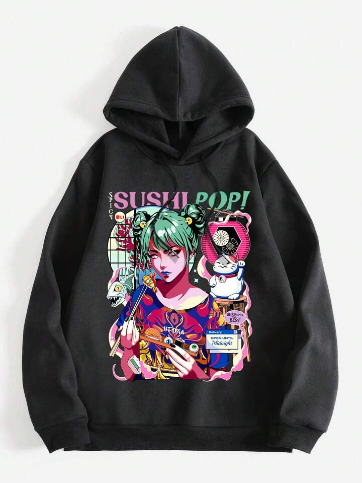 Heymoonly Männer Hoodie mit Buchstabe & Figur Grafik, Tunnelzug, Thermal Futter,