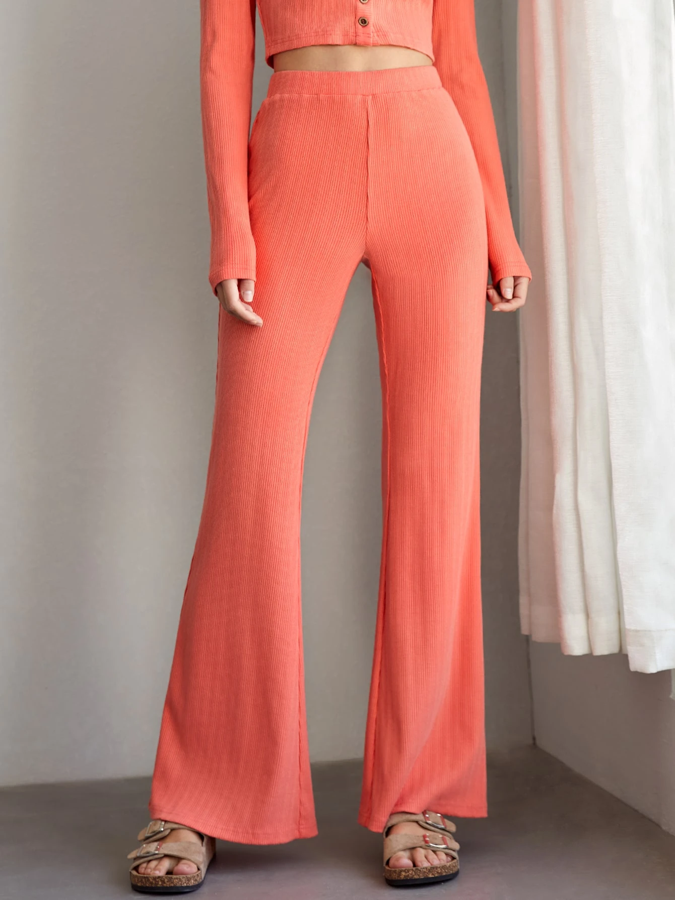 Hose mit ausgestelltem Beinschnitt, hoher Taille,