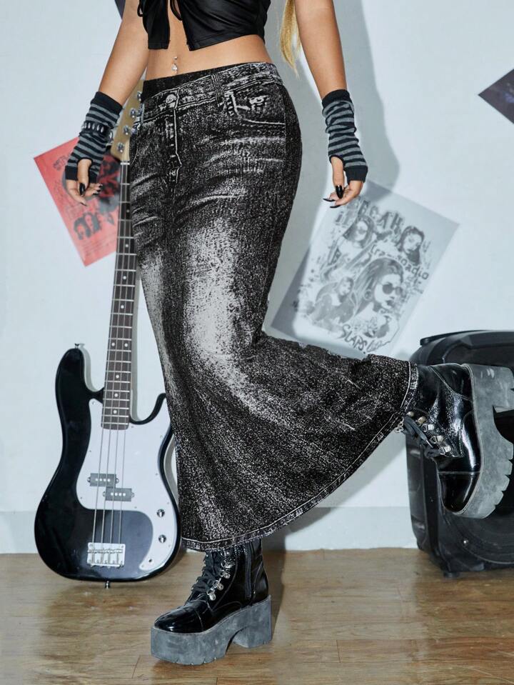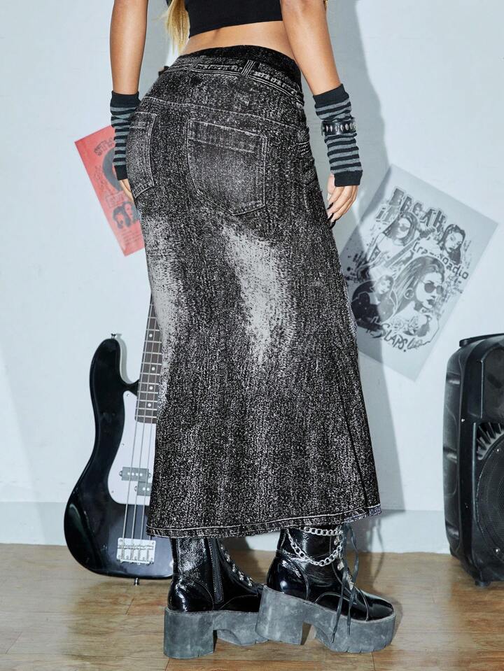 Rock mit hoher Taille, Meerjungfrau Saum, Gürtel,