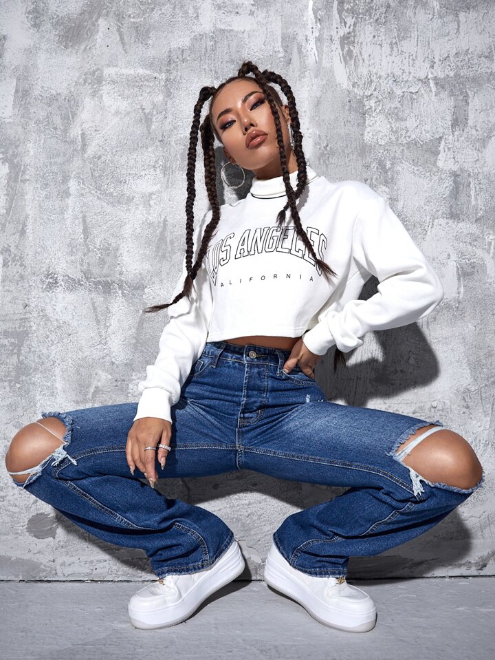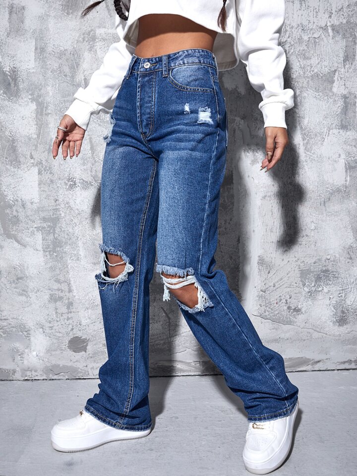 Boyfriend Jeans mit hoher Taille, Riss